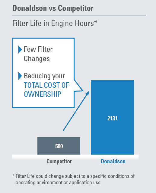 With Donaldson, you get longer service intervals, reduced engine wear, and lower total cost of ownership.
